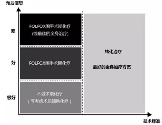 后"好"組別,比如EPOC研究里的主要群體,指南推薦FOLFOX術前新輔助化療;而對于CRS 3分以上的高度復發(fā)風險患者,預后屬于"差"組別,此時ESMO指南不但推薦要新輔助化療,方案也不僅僅局限于FOLFOX單純化療了。
