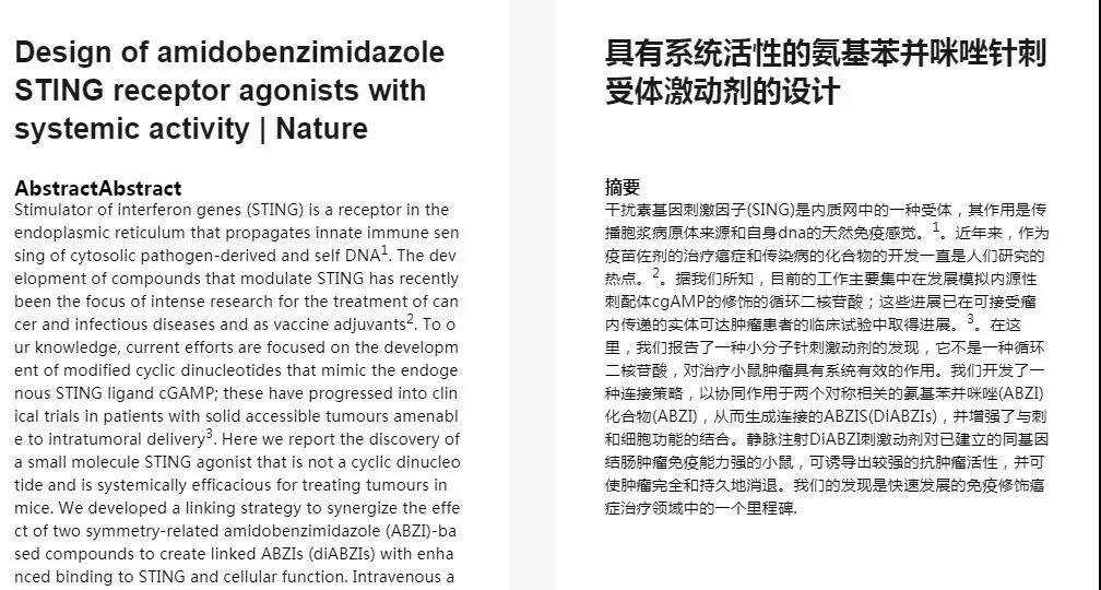 科學家們對這種新型 STING 激動劑的潛力感到無比興奮。一方面,靶向 STING 的免疫機制,為整個腫瘤免疫治療研究提供了新的思路,另一方面,研究人員開發(fā)的新型 STING 激動劑,也推動了新型免疫藥物的出現和臨床應用。