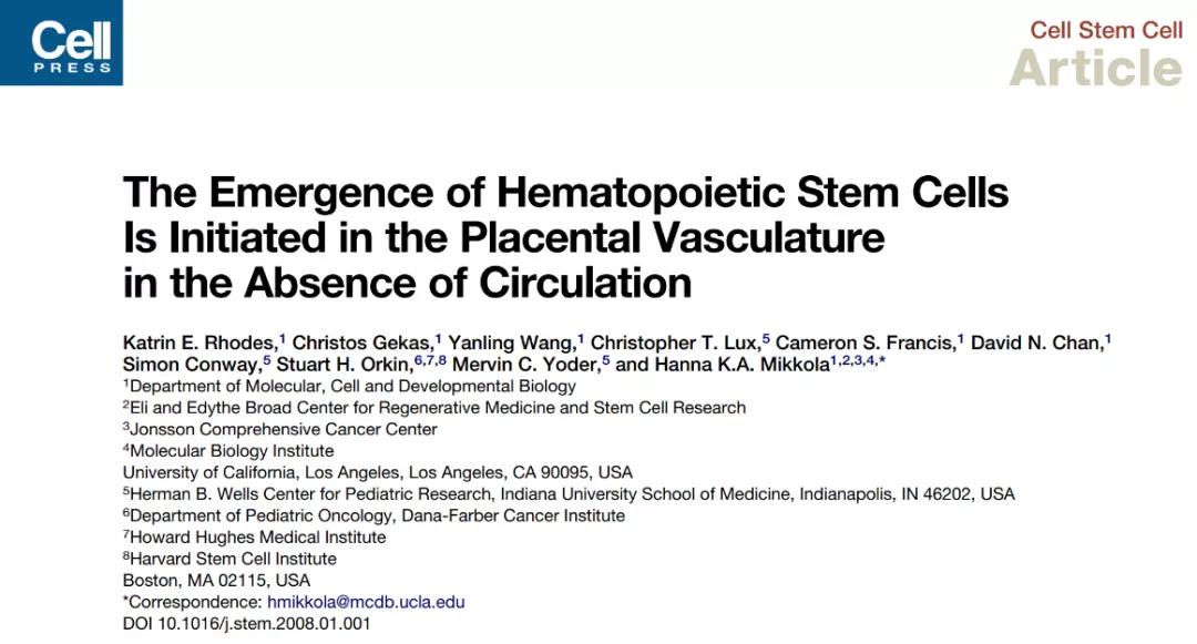 2008:造血干細胞最早在胎盤中出現(xiàn)