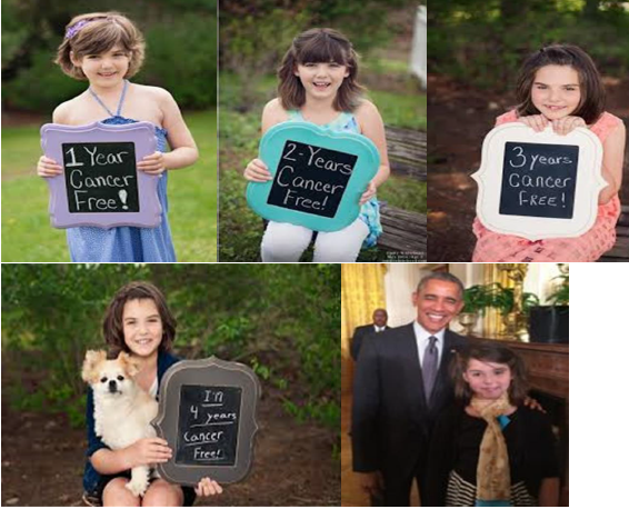 圖2,治療后的Emily, 1 年,2 年,3 年,4 年,以及和前總統(tǒng)的照片。
