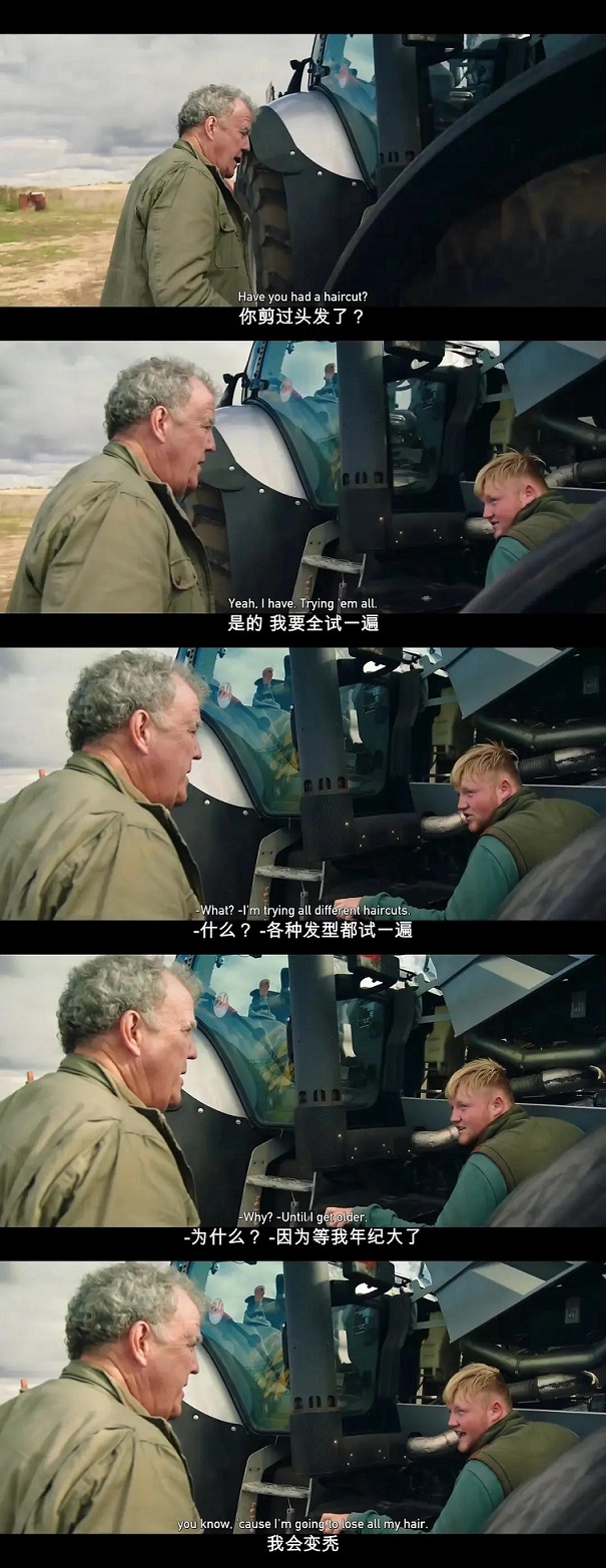 前段時(shí)間看了個(gè)紀(jì)錄片《克拉克森的農(nóng)場》,(發(fā)際線告危)的克拉克森和年輕農(nóng)夫小伙的一段對話給我笑壞了。