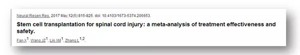 發(fā)表在《Neural Regen Res.》雜志上的論文分析了10項(xiàng)囊括干細(xì)胞治療377名脊髓損傷患者的研究,結(jié)果表明,干細(xì)胞移植治療脊髓損傷可以改善感覺(jué)功能和膀胱功能,同時(shí)具有修復(fù)的功能,可以初步認(rèn)為是有效的。
