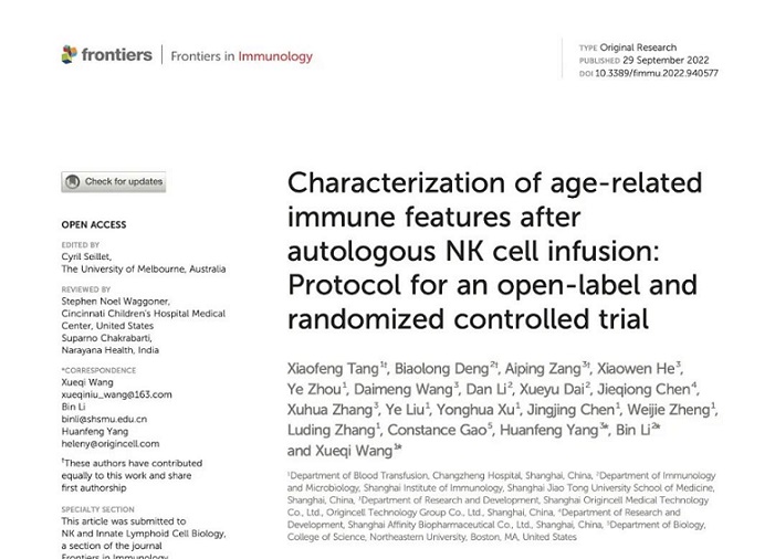 長征醫(yī)院、上海免疫學(xué)研究所、原能細(xì)胞三家機(jī)構(gòu)近期在《Frontiers in Immunology》雜志上共同發(fā)布了關(guān)于自體NK細(xì)胞輸注對(duì)年齡相關(guān)免疫特征表征影響的研究數(shù)據(jù),進(jìn)一步佐證了通過自體NK細(xì)胞延緩衰老這一方法的可行性和有效性。